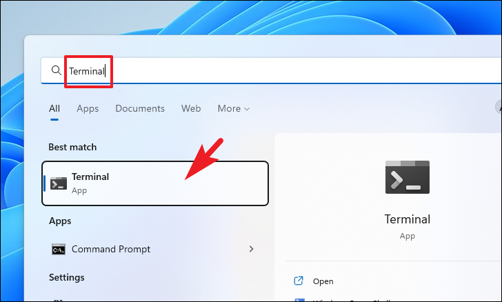 To do so, open the Start Menu and type Command Prompt to perform a search. Then, from the search results, right-click on the ‘Command Prompt’ tile and select the ‘Run as administrator’ option to open the Terminal with admin rights.