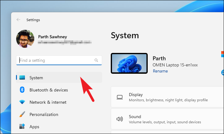 Then, make sure you have selected the ‘System’ tab present on the left sidebar of the Settings window.