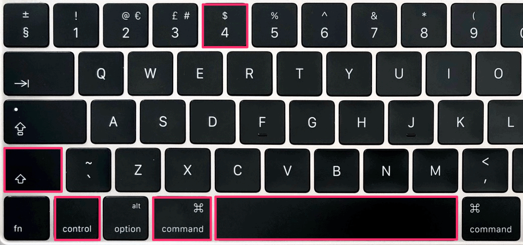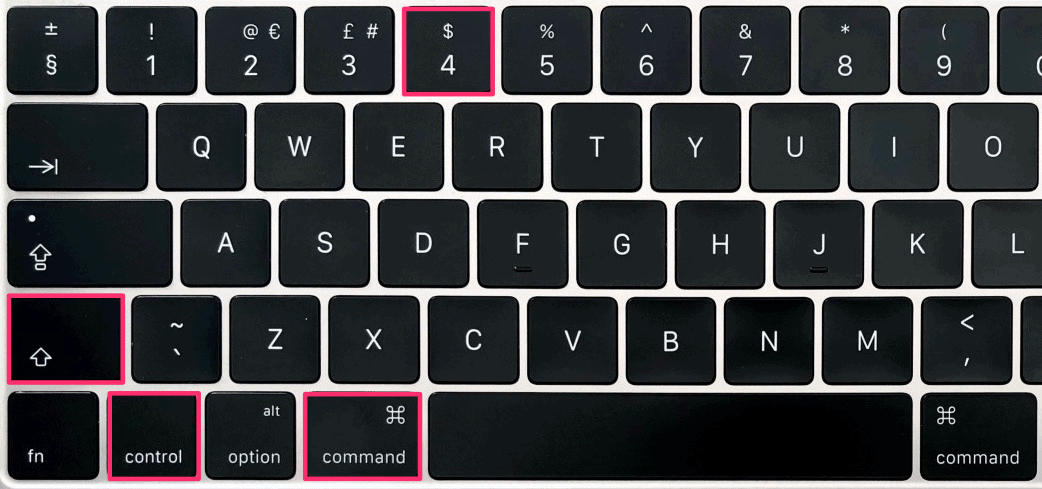 This method will take the screenshot of the selected area and save it on the clipboard. To do so, press the Command + Control + Shift + 4 keys together and then select the desired area with the cursor.