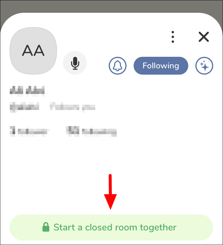 Sometimes, you see a friend in a room and want to share something with them or discuss the topic at hand privately. The two of you can start a new room by tapping on their profile and then selecting ‘Start a New Room Together’.