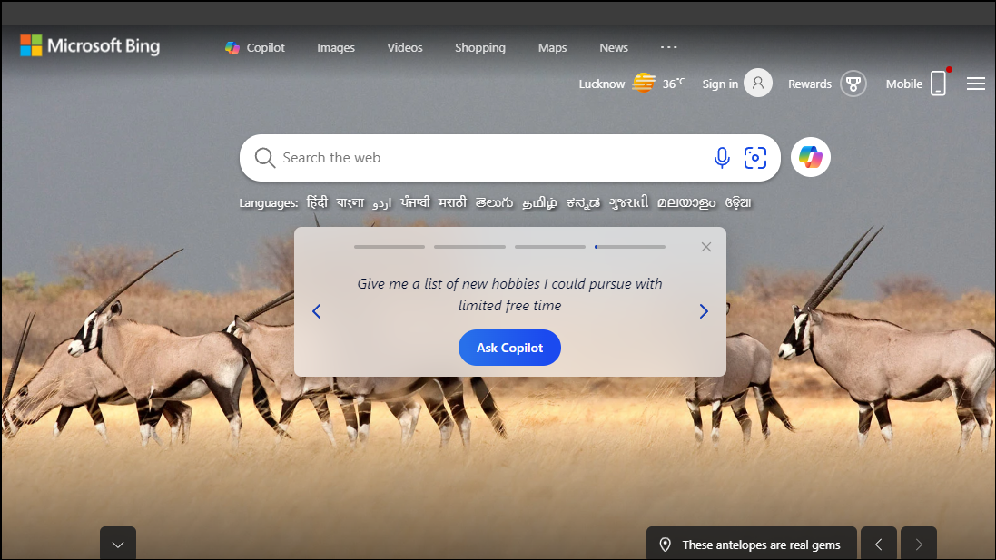 Microsoft's Bing search engine has been around for some time, and recently got AI integration with its AI chatbot Copilot, which is powered by OpenAI's GPT-4 model. This has allowed the search engine to support features like conversational queries, writing assistance, and image generation. While both ChatGPT and Copilot use the GPT-4 AI model, Copilot can do a lot more, because of which Bing is among the better AI search engines you can use.