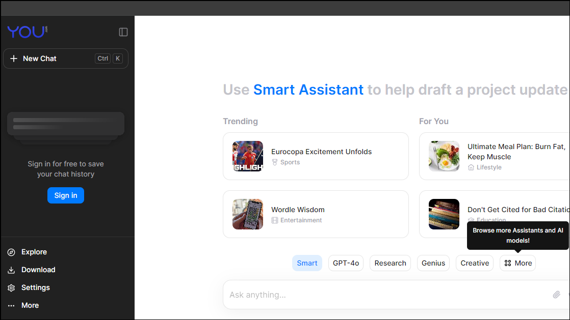 You.com provides additional tools for generating content and a Private Mode besides an excellent AI search engine