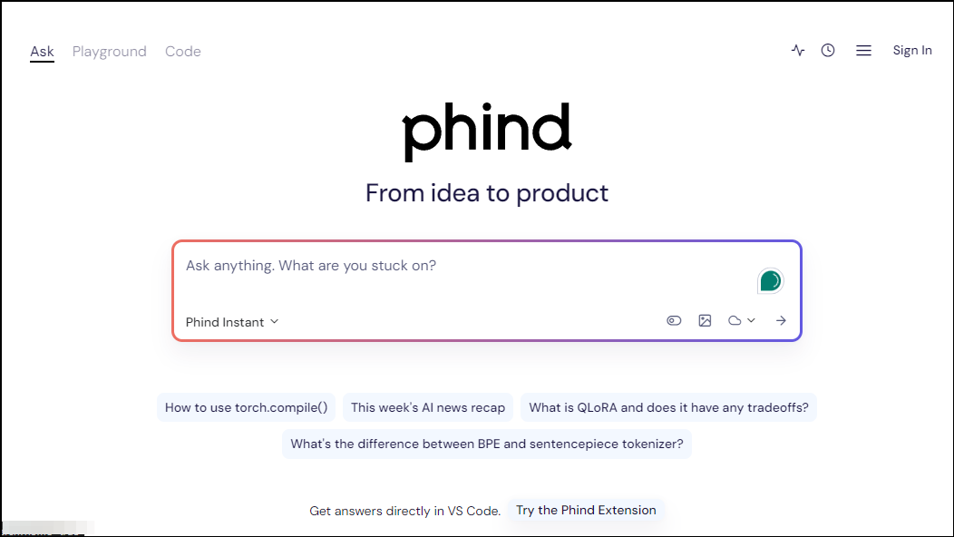 Like Brave Search, Phind is an AI search engine designed to assist developers by providing technical information quickly and easily required for complex coding problems. However, you can use Phind to get information on general topics as well, and it will offer related questions like other similar search engines. In addition, it can generate code within minutes and even explain it in simple terms.