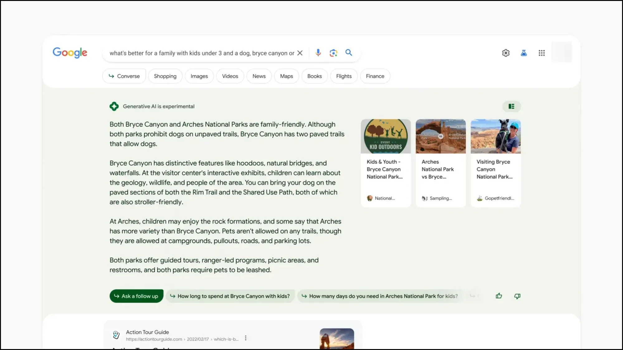 When we're talking about search engines, it is not possible to leave out Google and its experiments in the area. The company introduced its Generative Search Experience (SGE) last year, which provides AI-generated overviews to users when they search for something. SGE relies on large language models (LLMs) like PaLM 2 to create summaries, provide contextual and interactive information, and even answer follow-up questions.