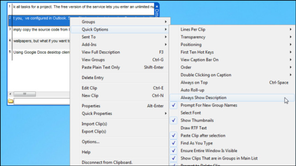 Another easy-to-use clipboard extension is ClipMate, which enhances the functionality of the built-in clipboard manager in Windows and can even be used from a USB drive.