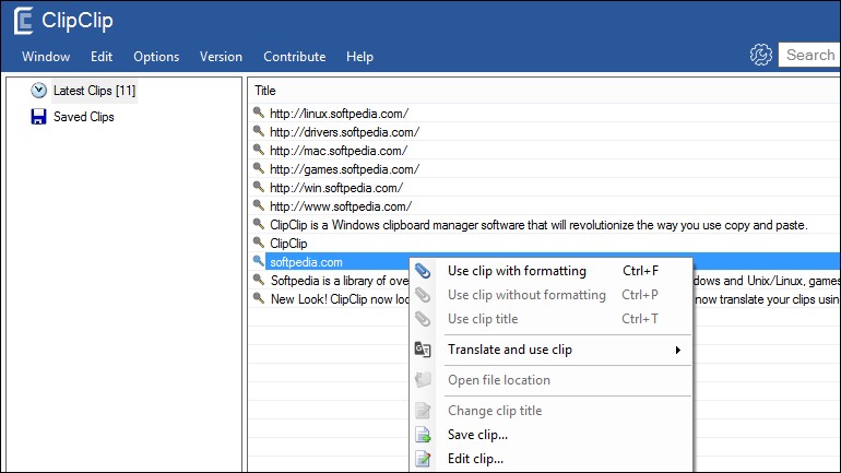 ClipClip is a free but very powerful clipboard manager for Windows that lets you copy text, images, and other files easily. You can also browse and organize your copied items, and there is a handy text translation feature that lets you translate your copied items effortlessly.