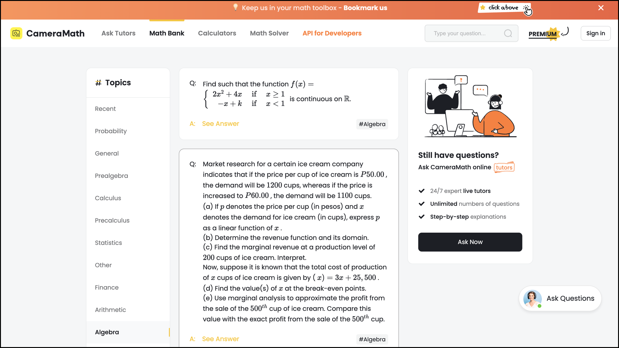 CameraMath is not just an app that provides solutions to math problems but also offers math resources and tutoring for students. It comes with features like Math Solver and Ask Tutors and you can even get personalized support when solving problems in algebra, calculus, and more. You can upload images of math problems, which the AI will analyze using image recognition and various algorithms, before providing the solutions.