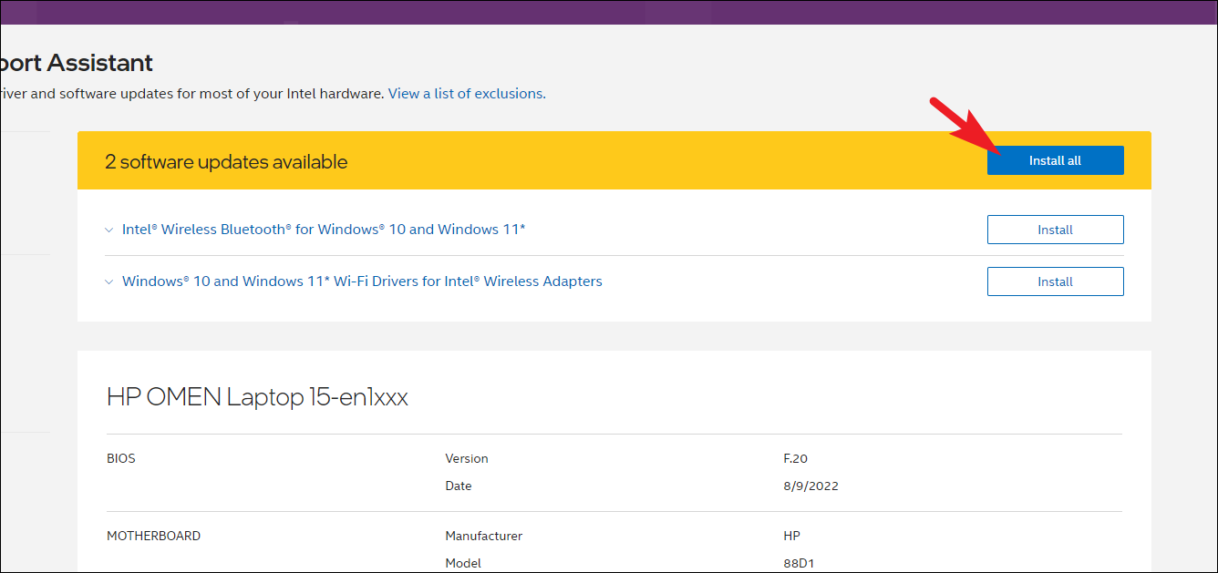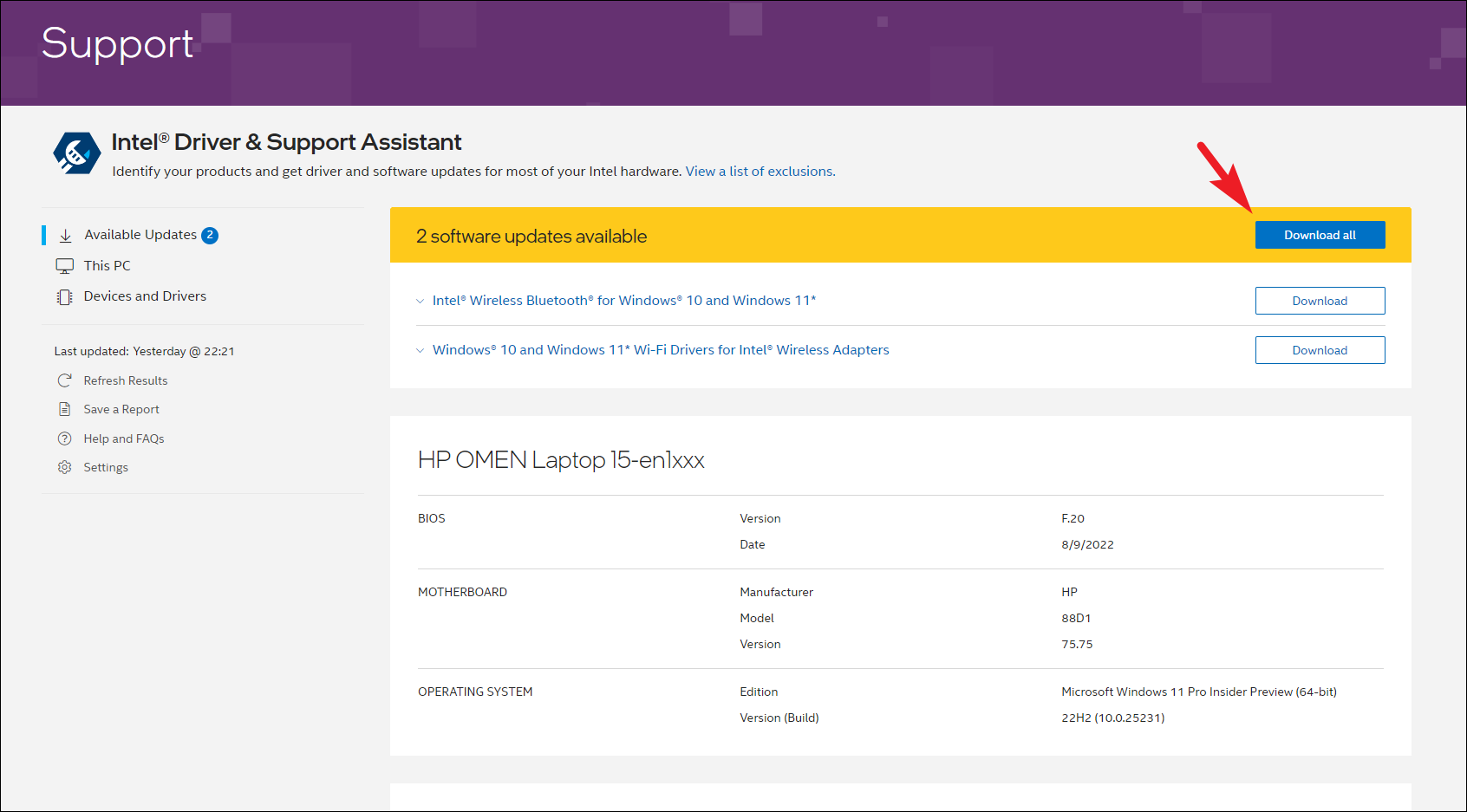 Many users have been able to resolve the issue by updating drivers for all Intel hardware installed on their PC. Thankfully, instead of manually hunting for each driver, you can simply install Intel assistant which will curate a list of all identified hardware installed on your PC and facilitate a one-click update for all of them.