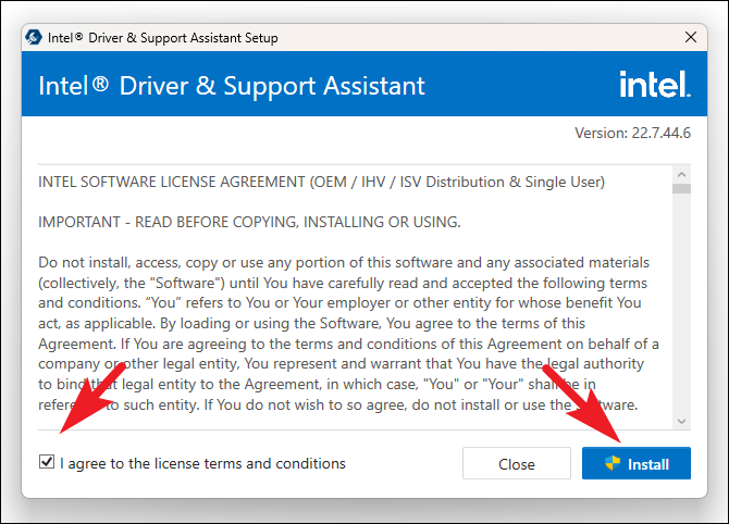 Then, click on the checkbox preceding the ‘I agree to the license terms and agreement’. Next, click on the ‘Install’ button.