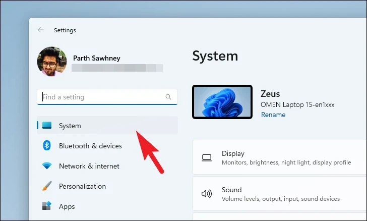 Then, make sure you have selected the ‘System’ tab from the left sidebar.