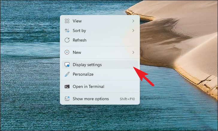 Otherwise, to directly jump to the Display settings page, right-click on the Desktop and then click on the ‘Display Settings’ option to proceed.