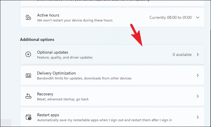 Then, click on the ‘Optional Updates’ tile to proceed.
