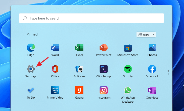 Before you proceed to fix any issues with Night Light, you must ensure the feature is properly switched on. To do so, click the Windows/Start button and click on Settings in the Pinned apps section. Alternatively, you can also hold the Windows+I keys together to launch the Settings app.