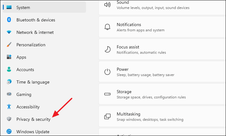 First, head to the Settings app and select ‘Privacy & Security’ from the options on the left.