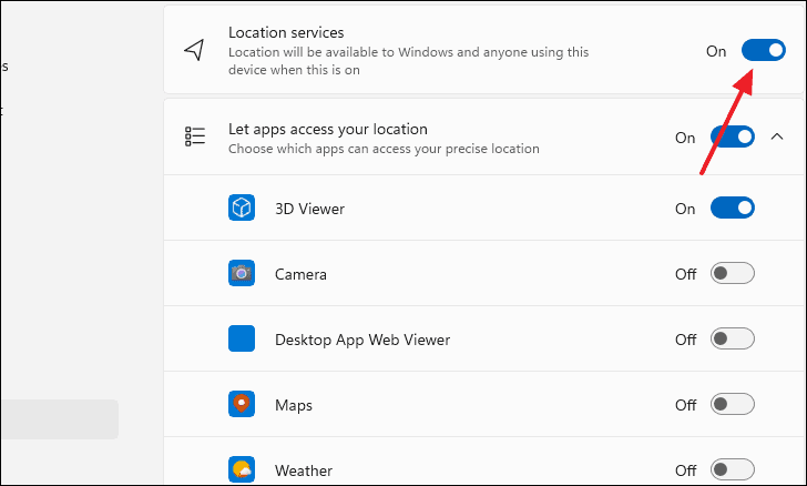 Now, click on the toggle switch next to ‘Location services’ to turn ON the location for your PC.