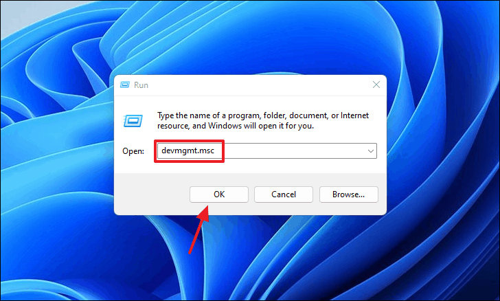 Type devmgmt.msc on the Run dialog box and hit enter. This will open the Device Management window.