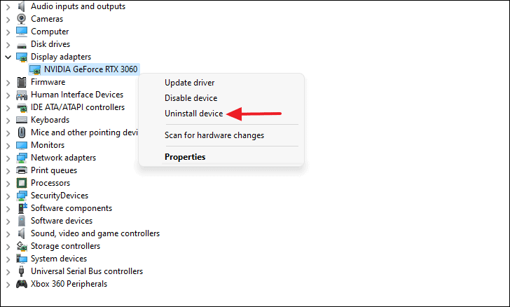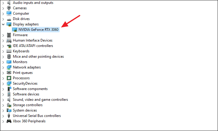 Here, click on the ‘Display adapters’ option, and then right-click on the display adapter that appears under it.