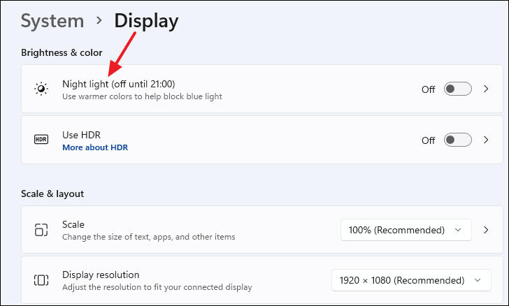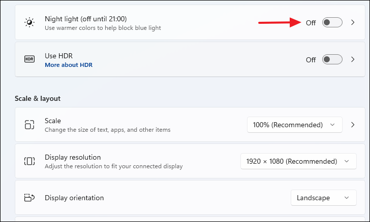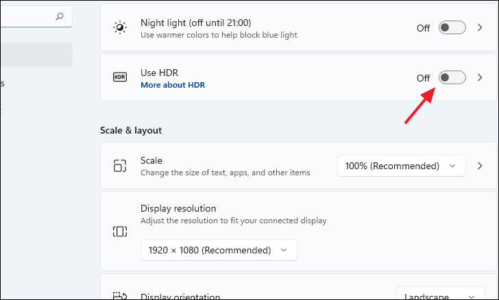 If the Night light feature is turning off by itself when you resume your computer from sleep mode, it is possible that HDR might be on. HDR is a feature that provides brighter visibility and vibrance in images or any other media.