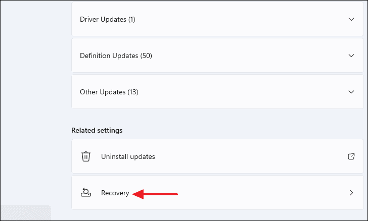 Scroll down a bit on the next screen and select the ‘Recovery’ option under Related settings section.