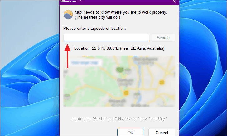 After installing f.lux, it will ask for your location or zip code to automatically set the appropriate filter according to the time of the day at your location.