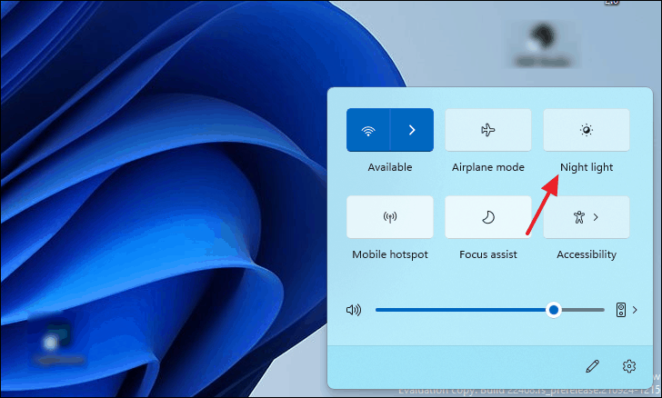 Alternatively, you can press Windows+A keys to pull up the Quick Actions menu on Windows 11 and turn Night Light on or off from there. That is if you have a Night light button included in the actions menu.