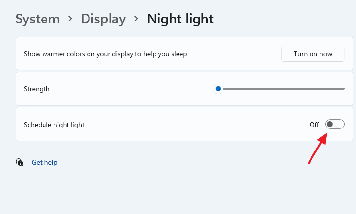 Now, click on the ‘Schedule night light’ toggle to turn it ON and to bring up the schedule menu.