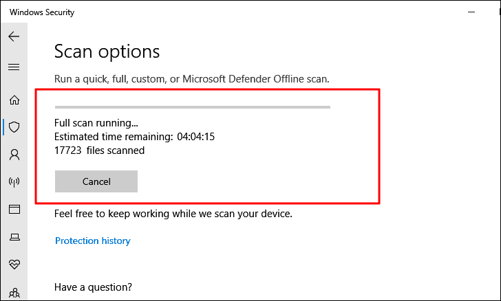 In case you are encountering the ‘System Service Exception’ error due to a malware or virus, that has infected your system, running a ‘Full Scan’ will do the job. Many users resort to third-party antivirus, however, the built-in ‘Windows Security’ is equally effective when it comes to identifying and neutralizing the threats.