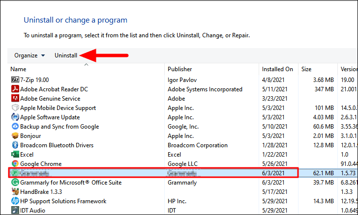 You will now find a list of the apps installed on your system. Select the one you believe might be leading to the error and click on ‘Uninstall’ at the top. Also, the date of installation of the app is mentioned next to it, which makes it easy to identify the malfunctioning app. Now, follow the on-screen instructions to complete the uninstall process.