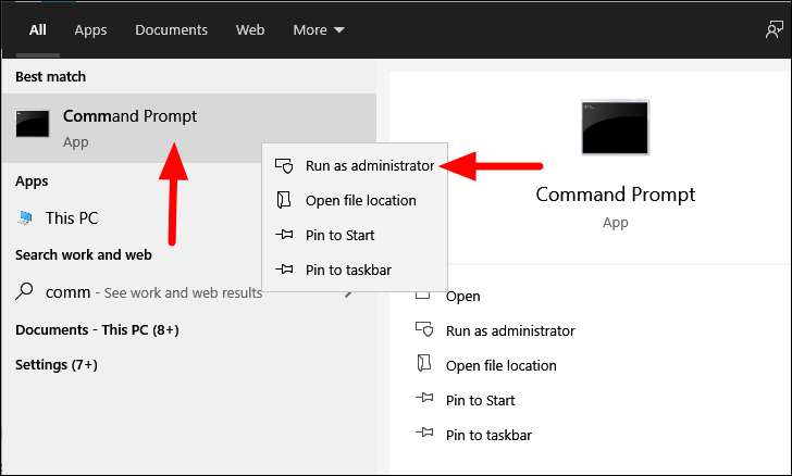 To run an SFC scan, search for ‘Command Prompt’ in the ‘Start Menu’, right-click on the search result, and then select ‘Run as administrator’ from the context menu. Next, click on ‘Yes’ in the confirmation box that pops up.