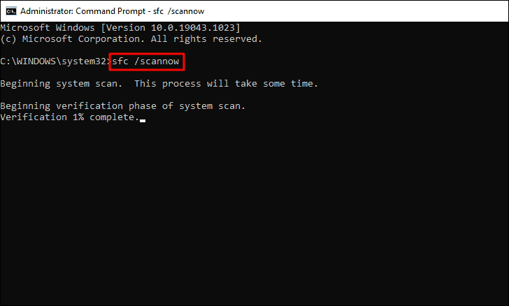 The scan will start within a few seconds. After the scan is complete, restart your computer and check if the error is fixed.