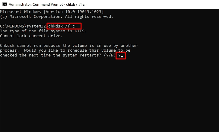 If you are asked to run the scan the next time your computer restarts, press Y, and then press ENTER.