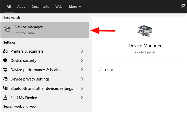 To reinstall the driver, search for ‘Device Manager’ in the ‘Start Menu’, and then click on the search result to launch the app.