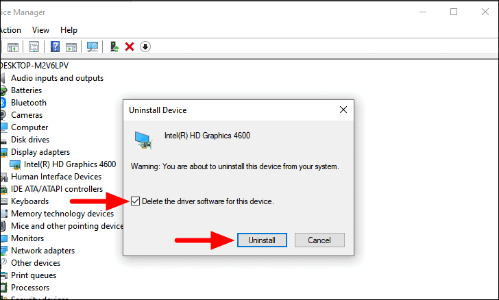 In the confirmation box that pops up, select the checkbox for ‘Delete the driver software for this device’, and then click on ‘Uninstall’ at the bottom.