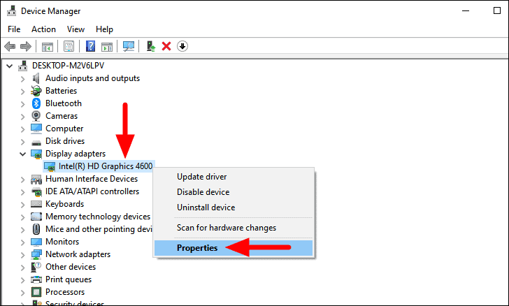 To find the current version of the ‘Graphics’ driver, right-click on it, and then select ‘Properties’ from the context menu.