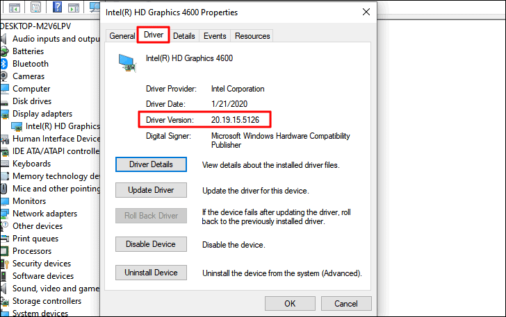 In the driver properties window, navigate to the ‘Driver’ tab, and note down the driver version mentioned near the top.