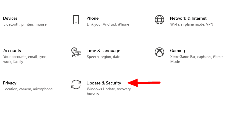 To update the Windows, press WINDOWS + I to launch system ‘Settings’ and then click on the ‘Update & Security’ settings.