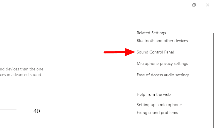 In the ‘Settings’ window, click on ‘Sound Control Panel’ under ‘Related Settings’ near the top-right.