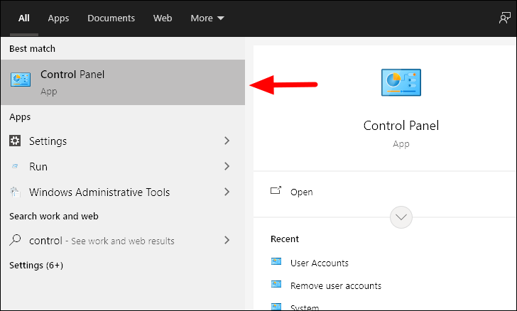 To increase the processor rate, search for ‘Control Panel’ in the ‘Start Menu’ and then launch the app from the search results.