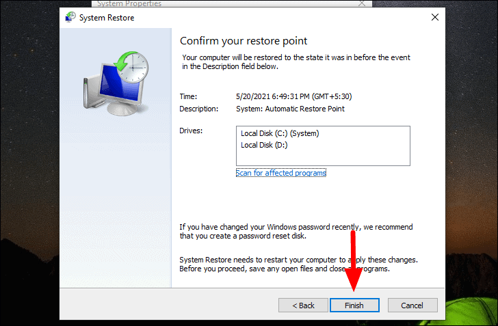 If you started encountering the error after an update or making some changes in the settings, you restore the Windows to an earlier point. System Restore reverts the Windows to an earlier point. Windows automatically creates a restore point before you make any major changes or install an update so that if something goes wrong, you can always revert to the stage where things worked fine. You can also create a restore point manually.
