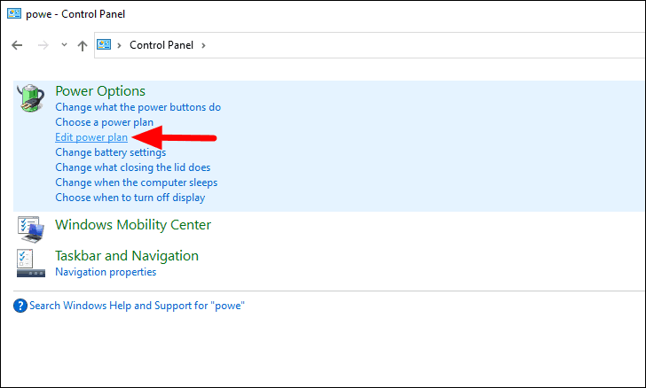 The ‘Power Options’ will be mentioned at the top. Select ‘Edit power plan’ under it.