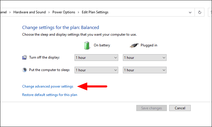Now, click on ‘Change advanced power settings’ at the bottom.