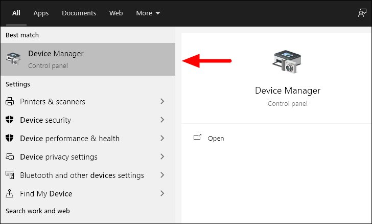 To update the display driver, search for ‘Device Manager’ in the ‘Start Menu’ and then launch it by clicking the search result.