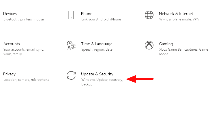 To update the Windows, press WINDOWS + I to launch system ‘Settings’ and then click on ‘Update & Security’ from the options.