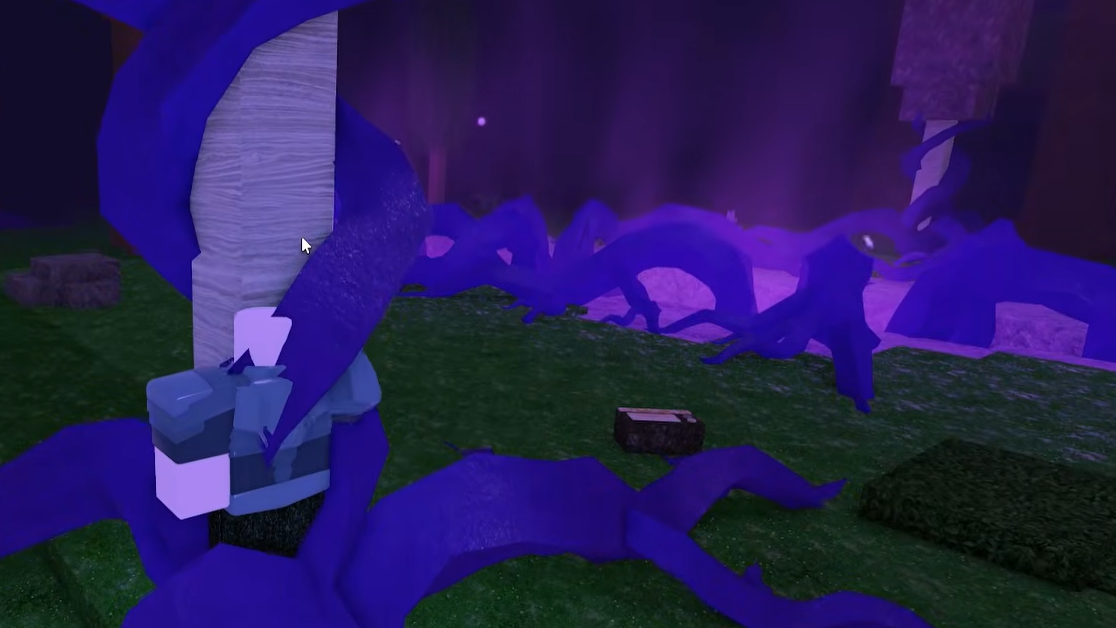 Step 2: Enter the infected area and chop down any corrupted trees. These are visually distinct, with darker bark and visible signs of infection.