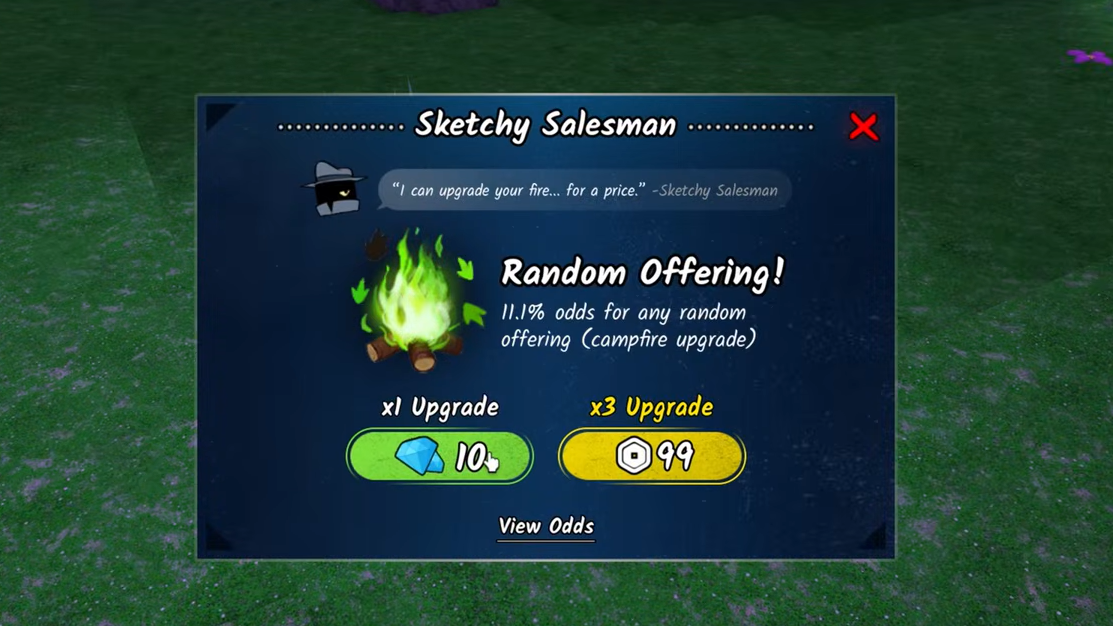 Fire Offerings are a campfire mechanic in 99 Nights in the Forest that let you trigger specific events or buffs on demand instead of waiting on random chance. You pick them up from a traveling NPC, store them between runs, and toss one into the campfire when you want its effect to fire off.