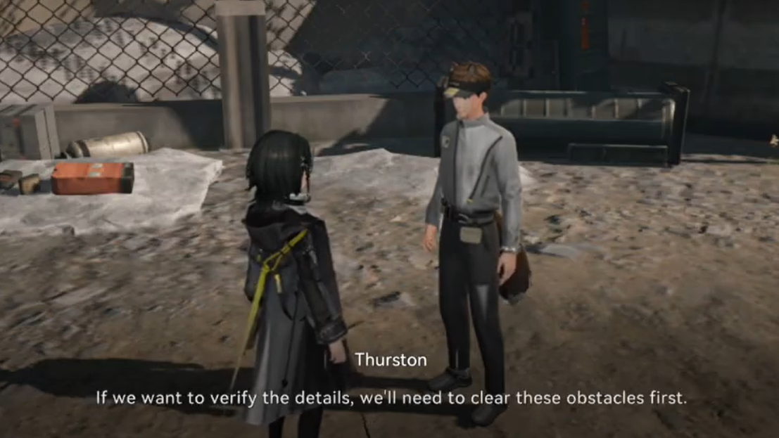 Step 2: Follow Thurston until you reach the building. After a brief conversation, he'll instruct you to search the area for clues about what happened to the Landbreakers.