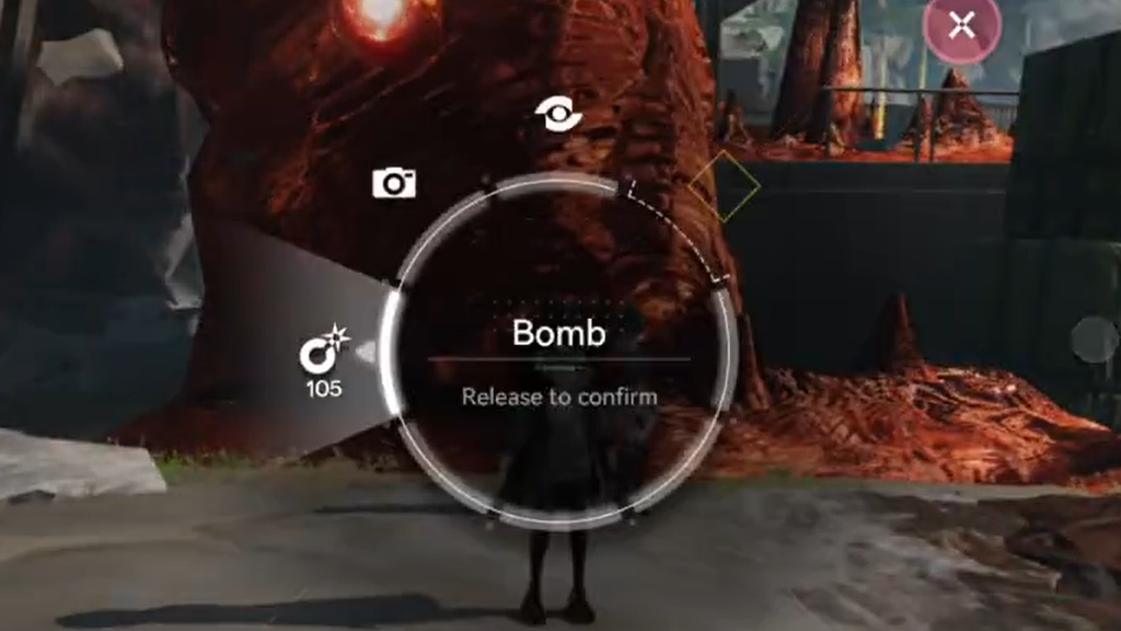 Step 2: From this position, you can see the active Blight Core. Equip a bomb, aim carefully at the core, and throw it to destroy the blight. This clears the contaminated area so you can investigate.