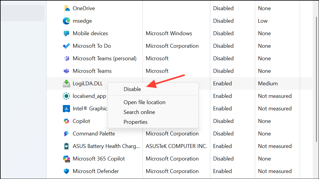 Step 2: Review each entry and right-click and disable any non-essential applications. Disabling these programs prevents them from running in the background, freeing up memory and CPU resources.