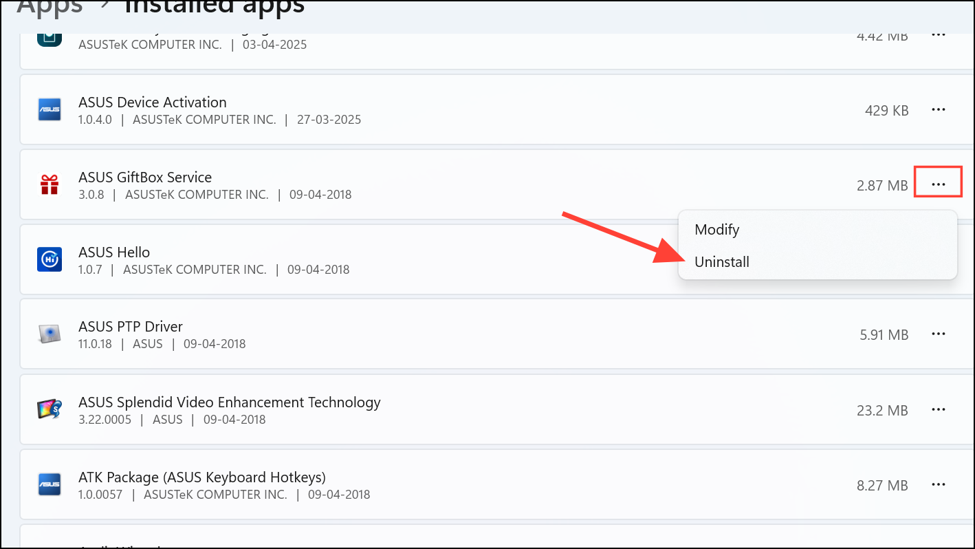 Step 2: Scroll through the list and click the three-dot menu next to any unwanted application, then select Uninstall. Follow the prompts to complete its removal.
