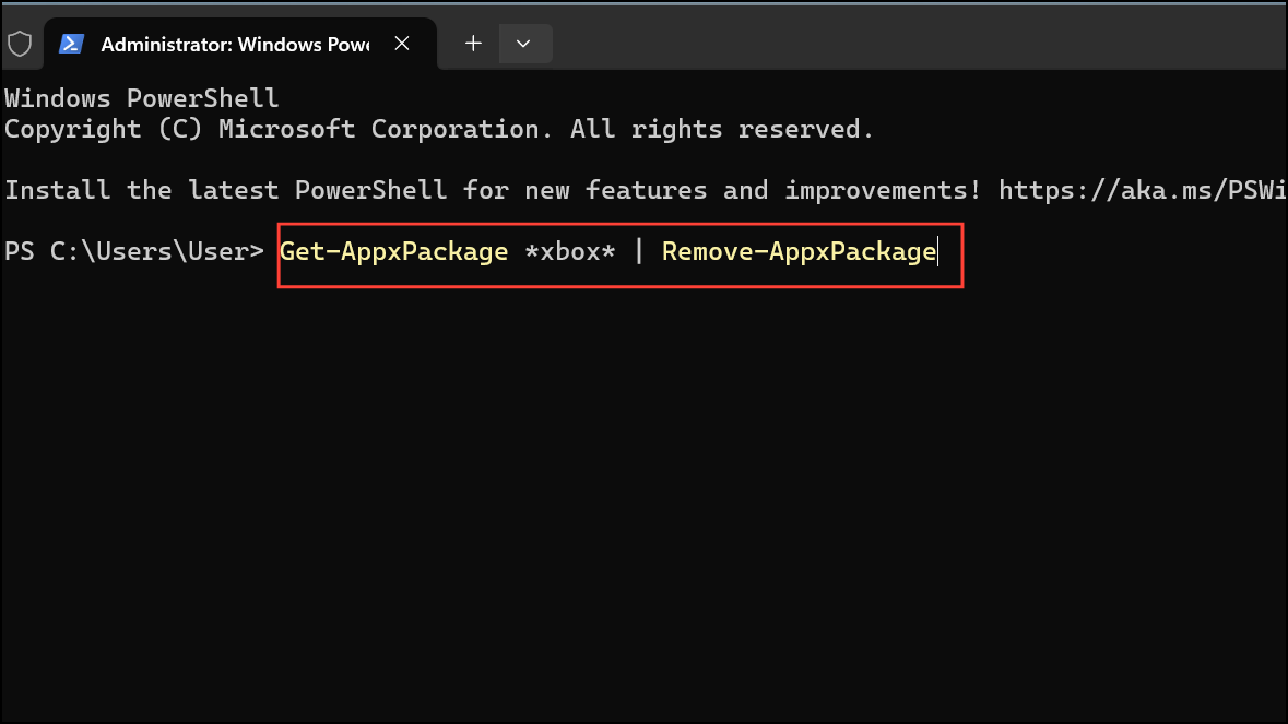 Step 4: Then, enter the appropriate command to remove specific apps. For example, to remove Xbox, use: